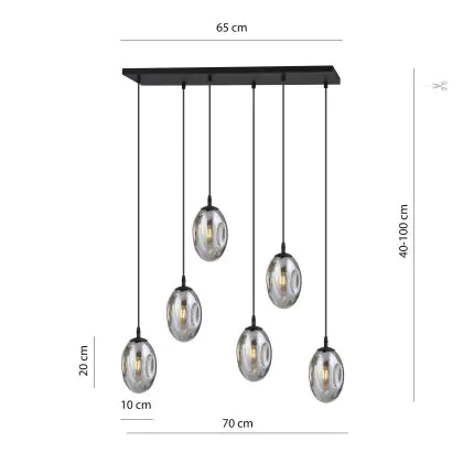 Beschrijving Emibig Hanglamp Astral Staal Zwart | Geschikt voor 6x E14 - Max 10W