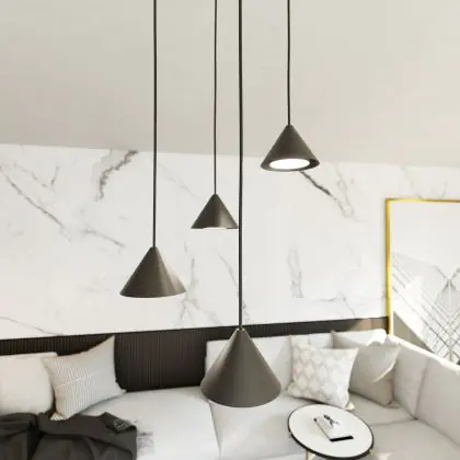De kleur van het armatuur kan een grote rol spelen in het interieur van een ruimte. Zo kun je kiezen voor een neutraal wit design of juist voor een donkere kleur, zoals zwart of zilver, om de lichtbron op te laten vallen of er zelfs een decoratie op zich van te maken.