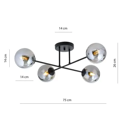 Beschrijving Emibig Plafondlamp Roma Staal Zwart | Geschikt voor 4x E14 - Max 10W