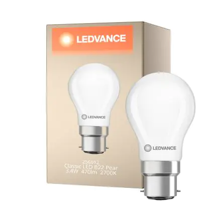 Beschrijving Ledvance Classic LED B22 Peer Mat 3.4W 470lm - 827 Zeer Warm Wit | Vervangt 40W