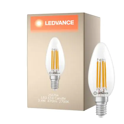 Beschrijving Ledvance Classic LED E14 Kaars Filament Helder 3.4W 470lm - 827 Zeer Warm Wit | Dimbaar - Vervangt 40W