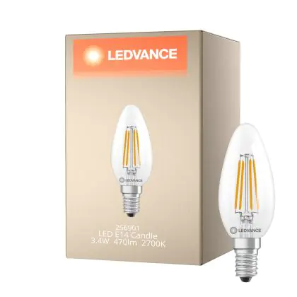 Beschrijving Ledvance Classic LED E14 Kaars Filament Helder 3.4W 470lm - 827 Zeer Warm Wit | Vervangt 40W