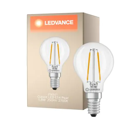 Beschrijving Ledvance Classic LED E14 Peer Filament Helder 1.8W 250lm - 827 Zeer Warm Wit | Vervangt 25W