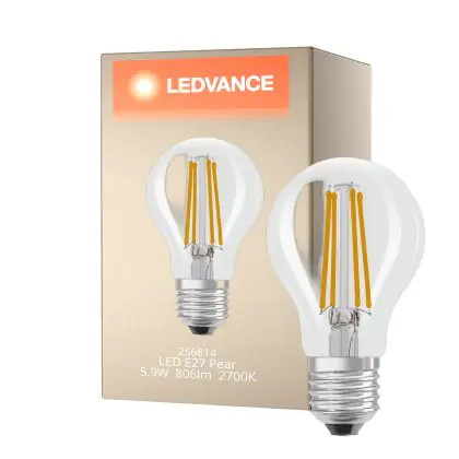 Beschrijving Ledvance Classic LED E27 Peer Filament Helder 5.9W 806lm - 827 Zeer Warm Wit | Dimbaar - Vervangt 60W