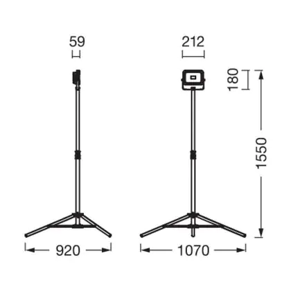 Beschrijving Ledvance LED Floodlight Bouwlampen Value Driepoot Zwart 20W 2000lm - 865 Daglicht | IP54 - Accu - Symmetrisch