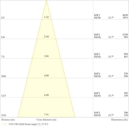 De gradenbundel geeft informatie over hoe breed het licht wordt uitgestraald. Dit zit tussen de 0 en 360 graden (D). Hoe kleiner de hoek, hoe specifieker de lichtbundel is. Over het algemeen is een smalle gradenbundel perfect voor sfeer- of accentverlichting, terwijl een brede gradenbundel ideaal is om grote oppervlaktes te verlichten.