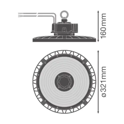 Beschrijving Ledvance LED Highbay Gen 5 Aluminium Zwart 150W 26250lm 70D - 865 Daglicht | IP66 - 1-10V Dimbaar