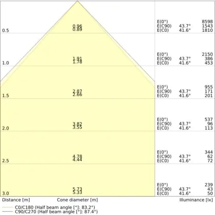 ![]() De kleurcode is een combinatie van de kleurweergave (CRI) en lichtkleur (Kelvin). Het eerste getal is de kleurweergave (1 = zeer slechte kleurweergave, 9 = maximale kleurechtheid). Het tweede en derde cijfer betreft de lichtkleur. Een lamp met kleurcode 830 heeft bijvoorbeeld een goede kleurweergave en straalt een warm wit licht uit (3000K), waar een lamp met de kleurcode 940 een uitstekende CRI heeft en een koel wit licht (4000K) uitstraalt. |
