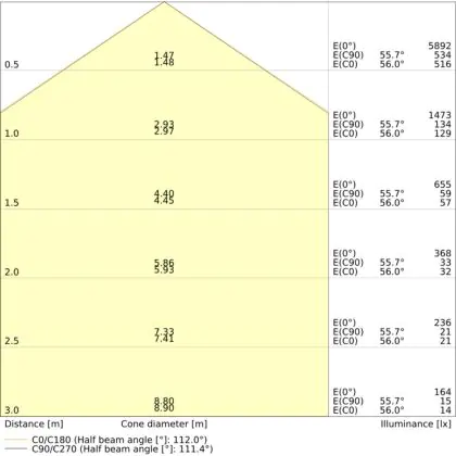 ![]() De kleurcode is een combinatie van de kleurweergave (CRI) en lichtkleur (Kelvin). Het eerste getal is de kleurweergave (1 = zeer slechte kleurweergave, 9 = maximale kleurechtheid). Het tweede en derde cijfer betreft de lichtkleur. Een lamp met kleurcode 830 heeft bijvoorbeeld een goede kleurweergave en straalt een warm wit licht uit (3000K), waar een lamp met de kleurcode 940 een uitstekende CRI heeft en een koel wit licht (4000K) uitstraalt. |