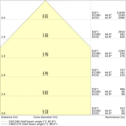 ![]() De kleurcode is een combinatie van de kleurweergave (CRI) en lichtkleur (Kelvin). Het eerste getal is de kleurweergave (1 = zeer slechte kleurweergave, 9 = maximale kleurechtheid). Het tweede en derde cijfer betreft de lichtkleur. Een lamp met kleurcode 830 heeft bijvoorbeeld een goede kleurweergave en straalt een warm wit licht uit (3000K), waar een lamp met de kleurcode 940 een uitstekende CRI heeft en een koel wit licht (4000K) uitstraalt. |