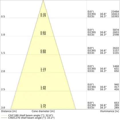 De gradenbundel geeft informatie over hoe breed het licht wordt uitgestraald. Dit zit tussen de 0 en 360 graden (D). Hoe kleiner de hoek, hoe specifieker de lichtbundel is. Over het algemeen is een smalle gradenbundel perfect voor sfeer- of accentverlichting, terwijl een brede gradenbundel ideaal is om grote oppervlaktes te verlichten.
