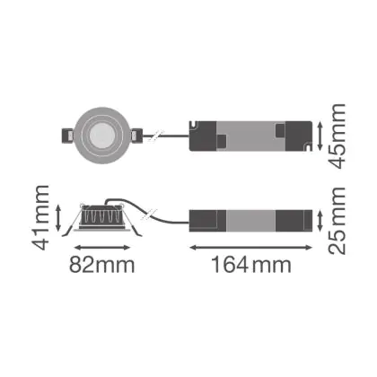 Beschrijving Ledvance LED Spot Combo Aluminium Zwart 6W 570lm 60d - 927 - 930-940 CCT | 82mm - Zaagmaat 68mm - IP65 - Dimbaar, Dali