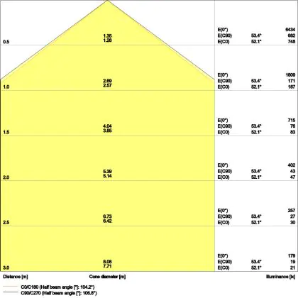 ![]() De kleurcode is een combinatie van de kleurweergave (CRI) en lichtkleur (Kelvin). Het eerste getal is de kleurweergave (1 = zeer slechte kleurweergave, 9 = maximale kleurechtheid). Het tweede en derde cijfer betreft de lichtkleur. Een lamp met kleurcode 830 heeft bijvoorbeeld een goede kleurweergave en straalt een warm wit licht uit (3000K), waar een lamp met de kleurcode 940 een uitstekende CRI heeft en een koel wit licht (4000K) uitstraalt. |