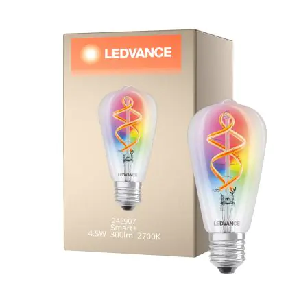 Beschrijving Ledvance Smart+ Wifi E27 Edison Classic Filament 4.5W 300lm - 827 Zeer Warm Wit | RGBW - Vervangt 30W