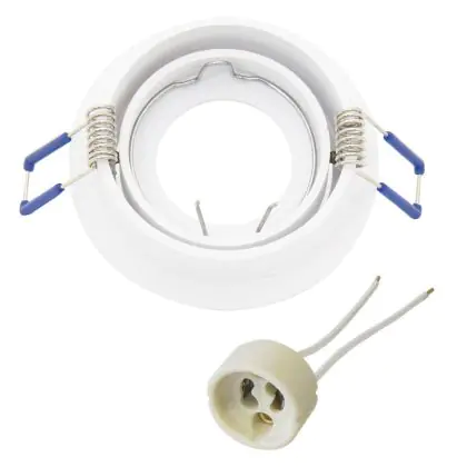 In deze spot zit een aansluiting voor een Gu10 fitting en heeft een 230V aansluiting. De frequentie-aansluiting is 50w. Gu10 lampen zijn LED of halogeen verkrijgbaar. We raden je altijd aan LED verlichting te gebruiken omdat deze langer meegaat en energie bespaart. Maar ook omdat LED verlichting betere kwaliteit heeft, het geeft kleuren beter weer en is feller.