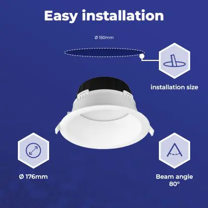 LED downlights kun je vergelijken met een inbouwspot, maar dan met een, over het algemeen, bredere stralingshoek. Downlight armaturen hebben een medium gradenbundel (25 - 40°), die perfect is voor ondersteunende verlichting, of een (zeer) brede gradenbundel (41 - >91°), die gebruikt wordt voor algemene verlichting. Deze 80° LED downlight van kun je in vele werkomgevingen en/of woningen gebruiken.