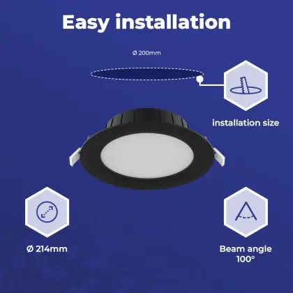 Beschrijving Noxion LED Downlight Hera Plat Zwart 21W 2400lm - 827-830-840 CCT | 213mm - Zaagmaat 195mm