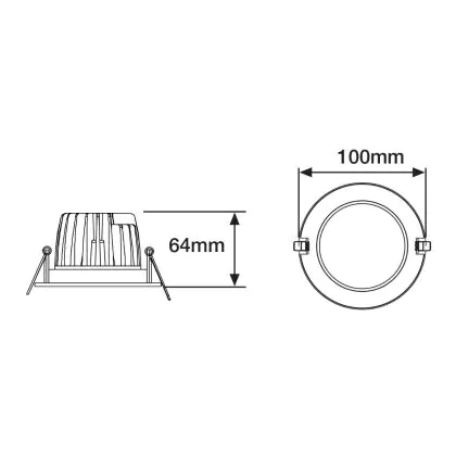 Op zoek naar een inbouwspot voor buitengebruik? Dan speelt de IP waarde van het armatuur een belangrijke rol. Dit cijfer geeft aan in hoeverre het product stof- en waterdicht is. Wanneer je een inbouwspot buiten wil plaatsen, bijvoorbeeld onder een carport of overkapping, dan raden we een IP waarde van tenminste 44 aan. De IP waarde van deze Noxion inbouwspot is: IP65 - Stof- en Waterdicht. Verder is de zaagmaat van belang. Vooral als er van tevoren een gat in een plafond moet worden gemaakt. De diameter van deze LED spot is: 95mm en de hoogte bedraagt: 64mm. Het plaatsen van dit inbouwarmatuur is met name vanwege de twee sterke rvs klemmen eenvoudig en kan rechtstreeks op de netstroom (230V).