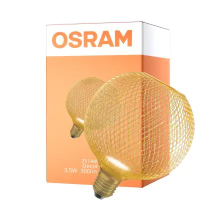 Beschrijving Osram Decor Plat Lamp In Metaal Behuizing LED E27 Globe Mat Goud 3.5W 300lm - 827 Zeer Warm Wit | Vervangt 25W