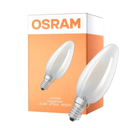Beschrijving Osram LED Superstar E14 Kaars Filament Mat 3.4W 470lm - 940 Koel Wit | Beste Kleurweergave - Dimbaar - Vervangt 40W