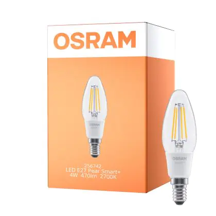 Beschrijving Osram Smart+ Matter Classic LED E14 Kaars Filament Helder 4W 470lm - 827 Zeer Warm Wit | Dimbaar - Via Smart Device Only - Vervangt 40W