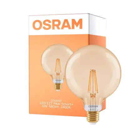 Beschrijving Osram Smart+ Matter E27 Globe Filament Goud 6W 680lm - 824 Zeer Warm Wit | Dimbaar - Via Smart Device Only - Vervangt 60W