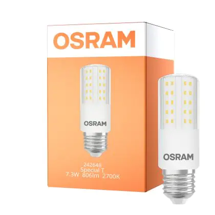Beschrijving Osram Special T Slim LED E27 Helder 7.3W 806lm - 827 Zeer Warm Wit | Dimbaar - Vervangt 60W
