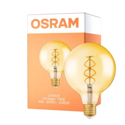 Het staat al in de naam beschreven. De Osram Vintage 1906 LED filament lamp combineert vintage design, die je doet denken aan de originele gloeilampen, met moderne LED technologie. Hiermee is er een klassieke lichtbron ontstaan, perfect voor decoratieve verlichting, die evengoed alle voordelen van LED technologie met zich meebrengt!