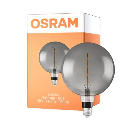 Beschrijving Osram Vintage 1906 LED E27 Globe Filament Smoke 200mm 5W 110lm - 818 Zeer Warm Wit | Vervangt 25W