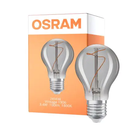 Beschrijving Osram Vintage 1906 LED E27 Pear Filament Smokey 3.4W 100lm - 818 Extra Warm White