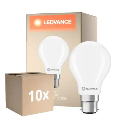 Beschrijving Voordeelpak 10x Ledvance Classic LED B22 Peer Mat 5.9W 806lm - 827 Zeer Warm Wit | Vervangt 60W