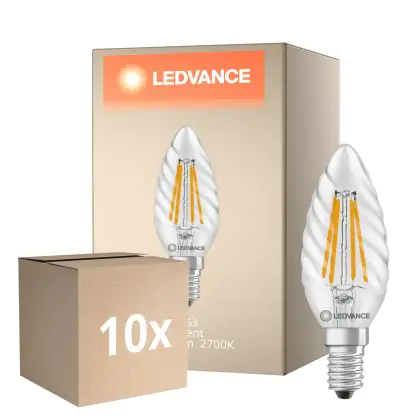 Beschrijving Voordeelpak 10x Ledvance Classic LED E14 TWisted Kaars Filament Helder 3.4W 470lm - 827 Zeer Warm Wit | Vervangt 40W