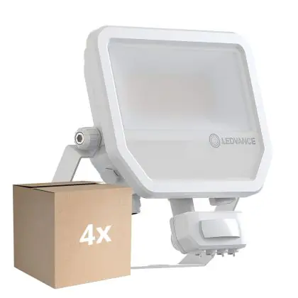 Voordeelpak 4x Ledvance LED Floodlight Aluminium Wit 41W 6000lm 100D - 840 Koel Wit | IP65 - Bewegings- en Lichtsensor - Symmetrisch