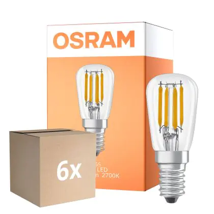Beschrijving Voordeelpak 6x Osram LED Speciaal E14 Buisvormig Lamp T26 Filament Helder 2.8W 250lm - 827 Zeer Warm Wit | Dimbaar - Vervangt 25W